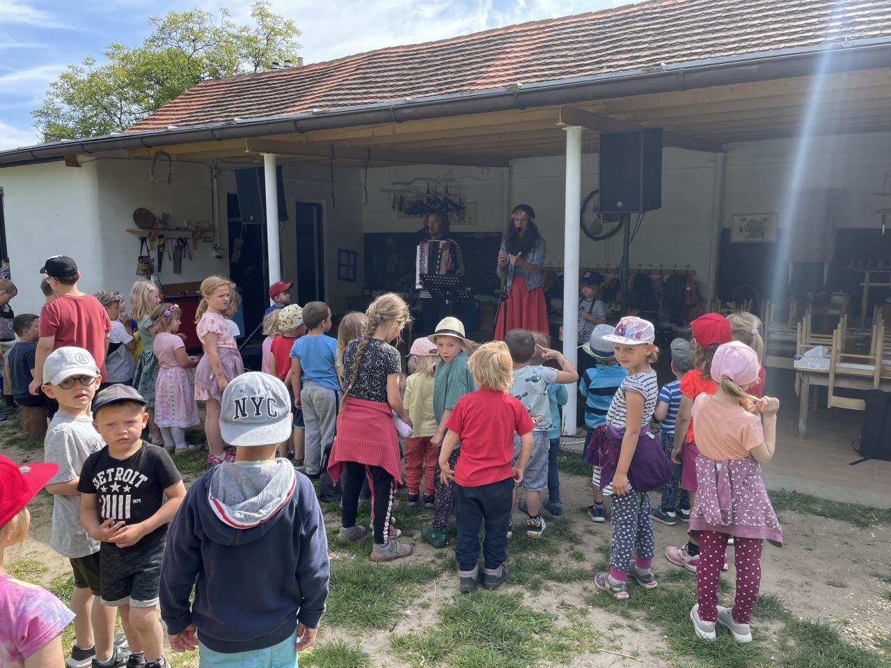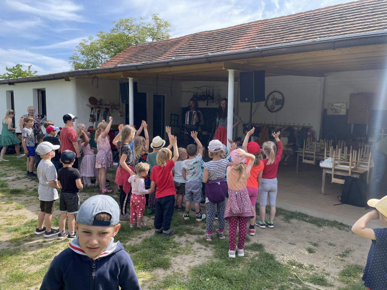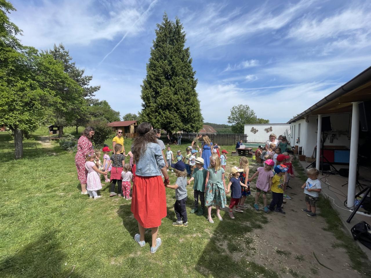 Na den dětí jsme se vydali pěšky na Vysoký Chlumec na zahradu základní a mateřské školy kde jsme si mohli nejen pohrát, prohlédnout si jejich mazlíčky a záhonky ale hlavně na nás čekal hudební program Škola písničkou (Kristýna a Kája Maříkovi). Celé dopoledne jsme zakončili dobrou zmrzlinou.